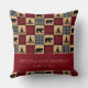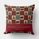 Rustik dekorativ kudde med lapptäcke i rött och svart buffelmönster som alternerar med lappar i ett träplankmönster. Björnar och tallar är invävda i mönstret. Personliggör med ett pars namn och deras bröllopsdatum, eller valfri text. Perfekt för ditt fjällhus.