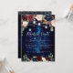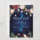 Rustika Burkar För Rehearsal Middag Ljussträngar. Med midnattsblå himmel, akvarellblommor boho vinröd och rosenskär och marinblå rosor. Accentuerad med elegant och modern falsk guld (med silverfilter) handskriven bröllopsinbjudan. DIY bakgrundsfärg.
