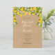 Med citronblommor och grönska kan denna stilrena botaniska inbjudan till övningsmiddag anpassas med din speciella evenemangsinformation på en rustik kraftbakgrund. Designad av Thisisnotme©
