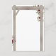 Information om höstbröllop på kort med en klass chic vit bakgrund som kan ändras till valfri färg, en stilren burgundisk, marsalared och roséfärgad akvarellblomsterdisplay på en rustik trädgårdsportal, ett skulpterat hjärta med parets initialer och en mall för bröllopsdetaljer.