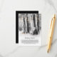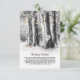 Lantlig informationskort för bröllop med en vinterlig utomhusmiljö med träd, varma glödlampor, ett romantiskt trähjärta med era initialer, två vinterrödbröst och en modern mall för bröllopsdetaljer.