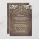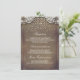 Rustik lantlig burlap, guldconfetti och spets bröllopsbiljett med information om mottagningen, boende och alla nödvändiga detaljer för era bröllopsgäster.