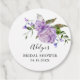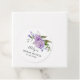 Rustik blommig etikett för bröllopsduschfavorit med akvarellillustration av lila peony med grönska. Perfekt för en sommar- eller vårbröllopsdusch.