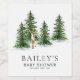 Rustika Etiketter för Vin till Baby Shower på Vintern är designade med akvarelltallträd och en söt liten hjort. Matchande föremål i vår Butik Cava Party Designs.