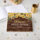 Rustika gästeböcker i trä med solrosmotiv för bröllopsfester