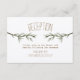 Ett rustikt bröllopskort med en illustration av grenar av ständigt grön buske.