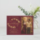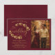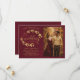 Denna vackra bröllopskort "Save the Date" har en rustik burgundy och guld färgad design med modernt skript bokstäver och en kvist av handmålade gyllene akvarellblad, vinrankor eller löv. Det finns utrymme för ditt foto, parets namn och bröllopsplats. Elegant, stilfull och chic, detta kort är ett bra sätt att låta dina vänner och familj veta att de ska spara datumet för din speciella dag.