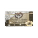 Rustika Landsbygd Stilar Bröllop Tack Bröllop Adressetikett Mallar - Paret Gamla Hästsko Hjärtat med Repbåge Knut och Vitt Spets, Solros, Strängljus och Juteväv på gammal Lada Trä Bakgrund.