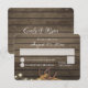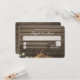 Hästskor bundna med en repliknot, rustika ladugårds trä och strängljus RSVP för att komplettera vår bröllopsinbjudan. Mörkt trä och gnistrande ljus ovanför med ljusare textfält för gäster att skriva i. På baksidan står brudens och brudgummens namn i skrivstil för en extra personlig touch.