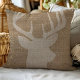 Skräddarsydd kudde med en rustic bock bild på jute. Personifiera den med dina initialer, namn eller annan anpassad text. Klicka på Anpassa för att lägga till din egen text och bilder för att skapa en unik kudde!