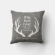 Din lilla pojke kommer att älska denna roliga kudde! Denna design har en grå texturerad bakgrund, hjorthorn och personlig typografi. Lägg till din sons födelsedata för att fullborda utseendet.