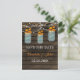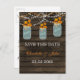 Rustika trä av ladan, hängande strängljus med höstlöv i en murarvas bröllop spara datum-kort. Matchande produkter finns också tillgängliga.