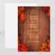 En varm och inbjudande design med en naturlig träbakgrund infattad av livfulla höstlöv och säsongsbetonade accenter. Kompositionen blandar rustika texturer med rika orange och röda toner och skapar en mysig och organisk visuell stil. De naturliga elementen och jordnära färgerna frammanar en tidlös och charmerande atmosfär.