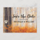 Landsbygdens höst sparar datumpostkort med en rustik höstskog med röda, orange och gyllene blad, silverbjörkar, ett sagolikt snidat hjärta på trädet med brudens och brudgummens initialer, och en elegant redigerbar mall för vigsel-spara-datum.