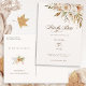 Romansen i ett höstbröllop fångas i denna eleganta design med akvarellrosor och grönska i varma höstfärger av terrakotta, elfenben, rost, kastanj, dammig blå och salvia grön med inslag av guld folie gnistrar. Denna design har också unika textgrafik i ett anpassat kalligrafi manus teckensnitt med färg som kan anpassas med hjälp av designerns redigerare.