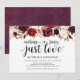 Det här rusticerade brölloppsinbjudningskortet med burgunderfärgade blommor är perfekt för er bröllopsfest. Lägg till era detaljer i matchande svart teckensnitt.
