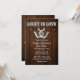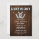 Vackra rustika bröllopsinbjudningar med glänsande hästskor, ett western-typografi som säger "Lucky in Love" mot en bakgrund av lada trä. Perfekt för en ranch, lada, western, utomhus eller rustikt bröllop. Handritad illustration av McBooboo.