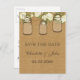 Rustika jute elfenbensrosor murskål bröllop sparar datum postkort. Matchande produkter finns också tillgängliga.