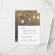 Strängljus och murade krukor, rustika svarskort med trädgrenar för bröllop