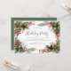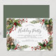 Vacker inbjudan till högtidsfest med en ram av kottar och julbär på vit bakgrund.