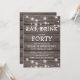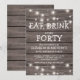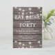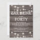 Inbjudningskort för fyrtioårsfirande med rustik trähundgrund, sträng av glittrande lampor och en mall för födelsedagsformulering. Födelsedagsåldern på denna inbjudan kan också ändras till 18:e, 21:a, 30:e, 50:e, 60:e, osv.
