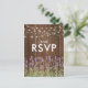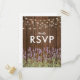 Svarskort för bakgårdsträdgårdbröllop med bakgrund av lada trä, lila sommarlavendelblommor, sträng av glödlampor och en elegant RSVP-mall. Klicka på "Anpassa den"-knappen för ytterligare anpassning av denna mall. Du kommer att kunna ändra all text, inklusive stil, färger och storlekar. Du hittar matchande bröllopsartiklar längre ner på sidan, om du inte hittar vad du letar efter, vänligen kontakta mig.