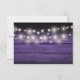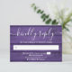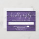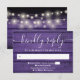 Ett rustikt RSVP-kort med vackra strängljus på en lila träpanel från en lada som bakgrund. Designad av Thisisnotme©
