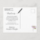 Detta vackra spara-datum-postkort kommer att låta dina vänner och familj veta om ditt kommande bröllop. Den typografiska designen har elegant, spetsig kalligrafi i en vit ram omgiven av knippen av handmålade liljblommor. Baksidan har en söt grafik som läser "skriv oss i din kalender" med utrymme för en anteckning som kan innehålla en webbplats för att ge dina gäster mer information.