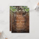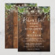 Denna rustika bröllopsrepetition middagsinbjudan, med blomstergrönska och strängljus på en lada träbakgrund, kan anpassas med din information i stilfull typografi. Designad av Thisisnotme©