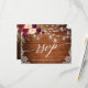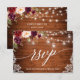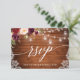 Rustik trä, modern kalligrafi, vattenfärg burgunder marsala blommor bröllop slingor svar RSVP-kort med burgunder och rosa rosor. Ljuslykta i masonburk.