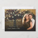 Dessa vackra kort är det perfekta sättet att låta dina vänner och familj veta att de ska spara datumet för ditt kommande bröllop. De har en rustik design med ett gyllene brunt träd vid solnedgång med strängar av guld ljus på en falsk pergamentbakgrund. Texten lyder Spara datum med utrymme för dina namn, datum och plats. Perfekt för ett utomhus, höst eller landsbröllop.