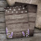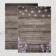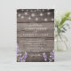 Rustik träsnickeri med lavendel och vita strängljus bröllopsinbjudan.