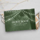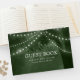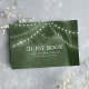 Fånga fina minnen från er rustika bröllopsdag med denna förtjusande gästbok. Ett majestätiskt träd i silhuett, prytt med gnistrande ljus i sträng mot en frodig grön bakgrund, skapar scenen för era gästers hjärtliga önskningar. Denna gästbok kommer att bli en skattad souvenir, som påminner er om den kärlek och glädje som ni delade på er speciella dag.