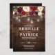 Rustika Trästrängljus med Spets och Burgunderröda Blommor för Bröllopsinbjudan