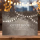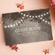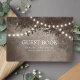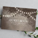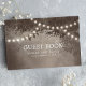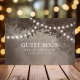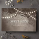 Fånga kärleksfulla minnen från ert rustika bröllop med denna förtrollande gästbok. Ett majestätiskt träd silhuett prydd med glittrande ljussträngar mot en varm brun bakgrund sätter scenen för era gästers hjärtliga önskningar. Denna gästbok blir en skattad souvenir som påminner er om den kärlek och glädje som delades på er speciella dag.