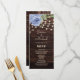 Elegant mörkbrun rustik träbröllopsmeny med glittrande ljusslingor och blåa akvarellblommor. Kontakta oss för hjälp med anpassning eller matchande produkter.