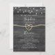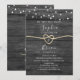 Enkel, elegant, modern, lada, rustika träljus och slingljus endast för bröllopsfest-inbjudan med falskt guldrep hjärta och monogram baktill.