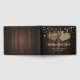 Elegant gästbok i rustik country-stil med två hjärtan av jute och strängljus på en rustik trädgallret bakgrund. Perfekt gästbok för din rustika country-, bondgårds-, bakgårds- eller lada bröllopsfest. Matchande artiklar finns.