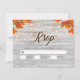 Rustika Grå Trä, Ljussträngar, Guldgnist och Höstlöv Säsongsbetonat Bröllop RSVP-kort.