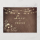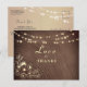 Skicka uppriktig uppskattning med detta rustika bröllop tack-postkort. Med en varm falsk trätektur, lysande ljus kedjor och gyllene blomsterdekorationer, är det ett charmerande och stilrent sätt att tacka dina gäster efter din speciella dag.
