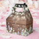En rustik bröllopspresentlåda med ömtåliga salvia- och syrenblad i akvarell och vackra ljussträngar på en träpanelbakgrund. Du kan anpassa med ditt eget tackmeddelande på baksidan. Ett perfekt sätt att tacka dina gäster! Designad av Thisisnotme©