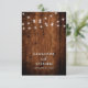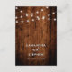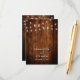 Denna rustika bröllopsinformationskort har en varm träbakgrund med mjukt lysande strängljus, vilket skapar en mysig och elegant estetik. Kombinationen av handskriven skrift och sans-serif-teckensnitt ger en touch av sofistikering samtidigt som den behåller en avslappnad, lantlig känsla. Utformat för att ge gästerna viktig bröllopsinformation, innehåller detta inklusionskort detaljer om mottagningen, boendealternativ och en länk till parets bröllopswebbplats för ytterligare uppdateringar. Perfekt för rustika, ladugårds-, boho-, höst-, bondgårds-, landsbygdens-, skogs- eller utomhusbröllop, säkerställer detta vackert tillverkade kort en smidig och stilren väg att hålla gästerna informerade samtidigt som det kompletterar det över