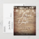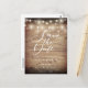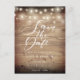 Det här rustika kortet för att spara datumet har vackra ljusslingor och ett elegant manus som sparar datumet ovanför dina detaljer som ställs in i elegant typografi på en rustik träpanelbaksida. Baksidan har ytterligare detaljer för att spara datumet, inklusive din bröllopswebbplats, med din returadress och utrymme för din mottagares adress. Designad av Thisisnotme