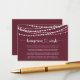 Denna rustika ljusslingor i burgunderröd för brölloppsönskan-kort är perfekt för ett klassiskt bröllop. Designen har vackra handmålade ljusslingor på en burgunderröd bakgrund.