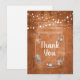 Rustika ljusslingar med murarskål tack-kort, med ljusslingar ovanför en konstnärlig murarskål fylld med ditt tack-meddelande och spridda vackra ömtåliga blommor på en rustik textur bakgrund. Ett perfekt sätt att säga tack! Designad av Thisisnotme