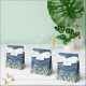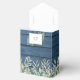 Elegant present för bröllopsfest med fina ljusslingor och delikat akvarellblad som ramar in den blivande brudens namn och speciella datum i modern typografi på en rustik blå trädgårdsbakgrund. Du kan anpassa den med ditt eget tack under locket. Ett perfekt sätt att tacka dina gäster på! Designad av Thisisnotme©