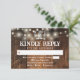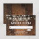 Ett rustikt RSVP-kort med hästskor och ljusslingor på en gammal träbakgrund, med dina detaljer i stilfull typografi. Designad av Thisisnotme