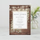 Med fina ljusslingor och ömtålig grönska i akvarell på en rustik trädörr, denna stilrena bröllopsinbjudan kan anpassas med din egen information om bröllopsfirande. Designad av Thisisnotme