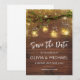 Masonburk + ljusslingor save the dates med rustik känsla!