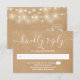 Ett enkelt elegant RSVP-kort med din information i chic typografi på en rustik kraftbakgrund, ljussträng och murade krukor på baksidan. Designad av Thisisnotme©